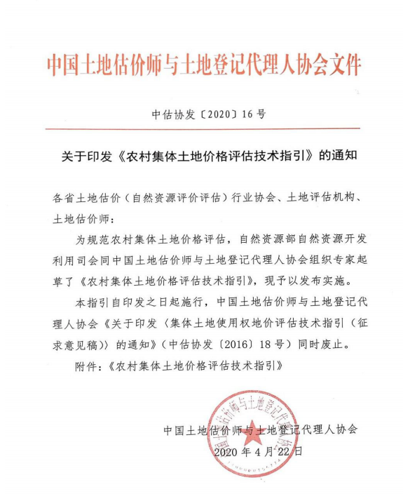 關(guān)于印發(fā)《農(nóng)村集體土地價(jià)格評(píng)估技術(shù)指引》的通知