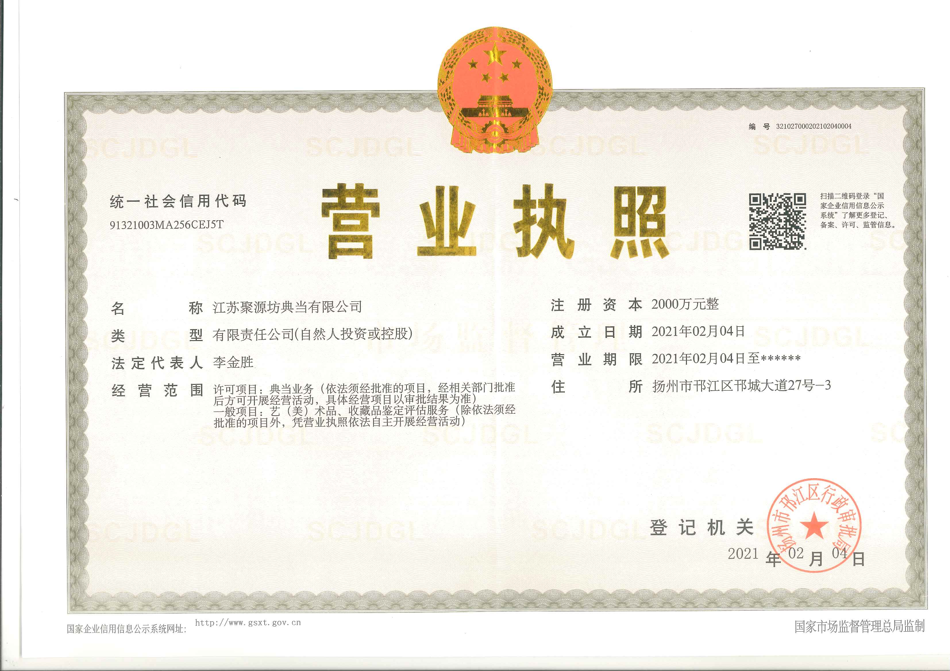 江蘇聚源坊典當有限公司 開業(yè)啦