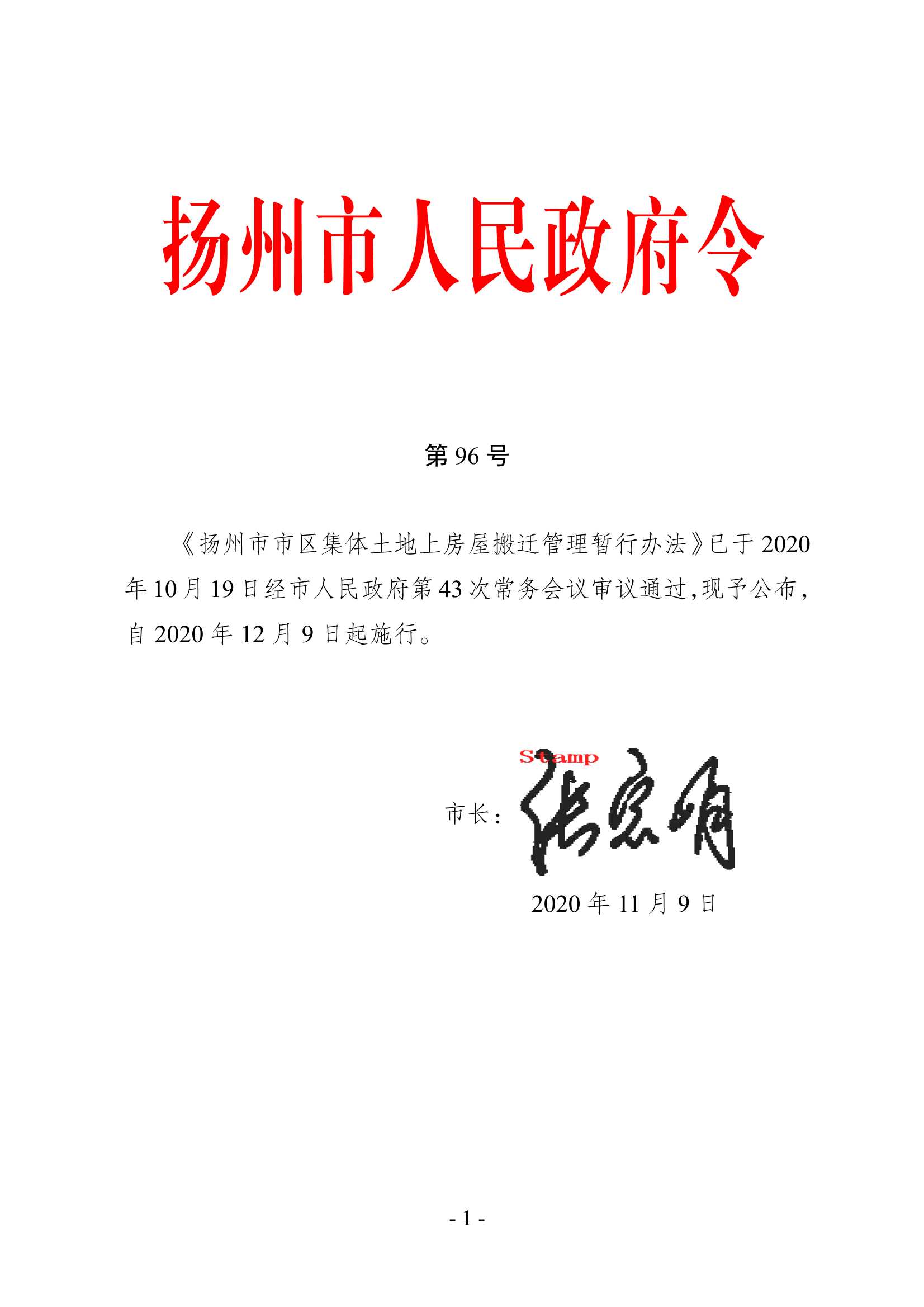 揚州市市區集體土地上房屋搬遷管理暫行辦法