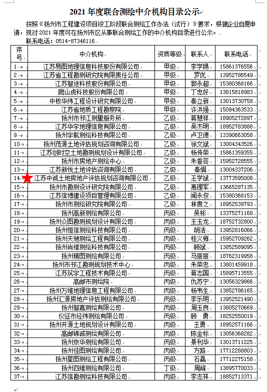 熱烈祝賀中誠評估入選揚州市2021年度聯合測繪中介機構目錄